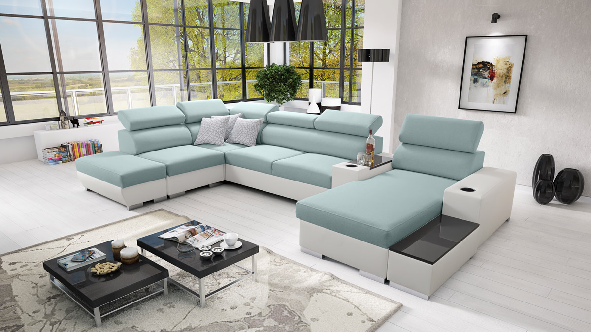 Jest to wysokiej klasy mebel o bardzo eleganckim, a zarazem nowoczesnym designie, który komponuje się dobrze w każdym otoczeniu. Siedzisko narożnika zostało wykonane z zastosowaniem sprężyny falistej oraz piance T-30, która pozwala na wysoki konfort użytkowania. Całość pokryta jest wysokiej jakości tkaniną. Wszystko wzmocnione stelażem na ramie drewnianej łączonej z płytą wiórową. Narożnik wykonany jest z jak największą starannością i dbałością o każdy szczegół.